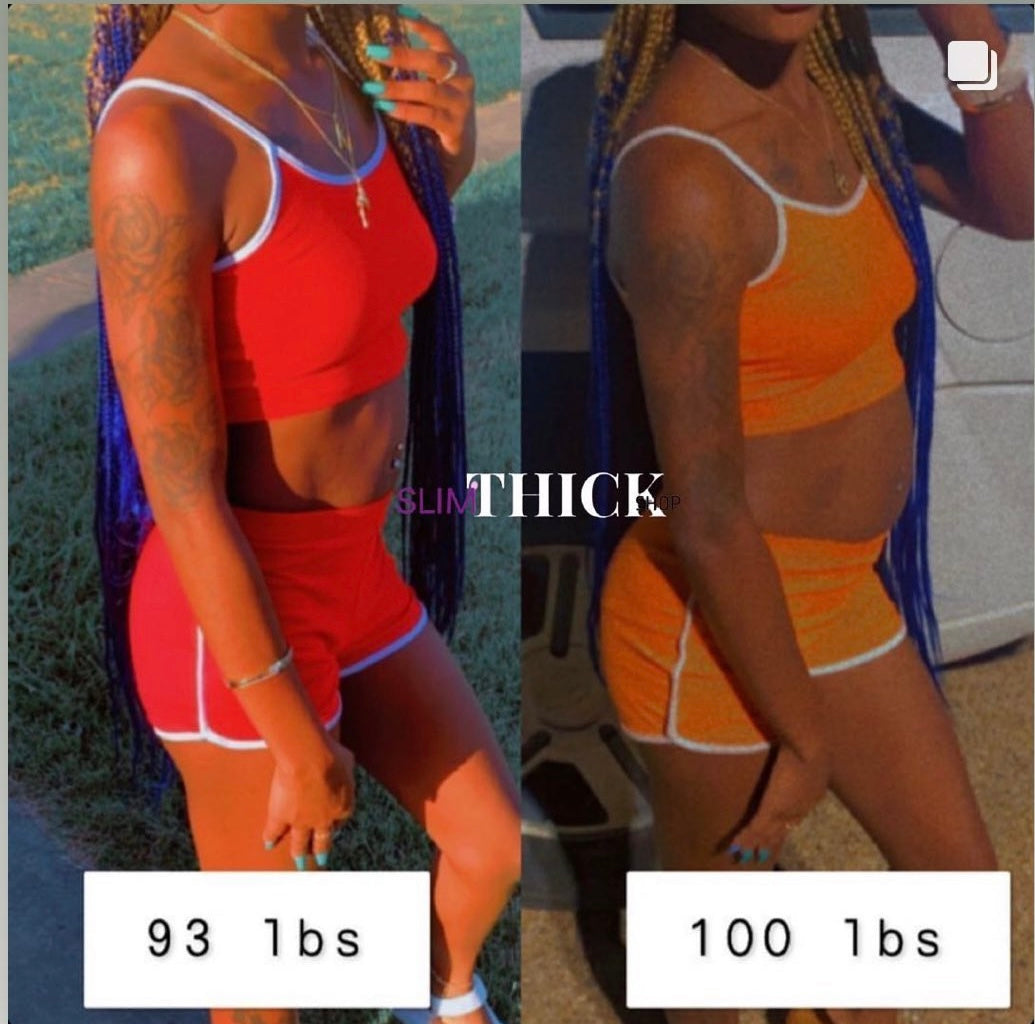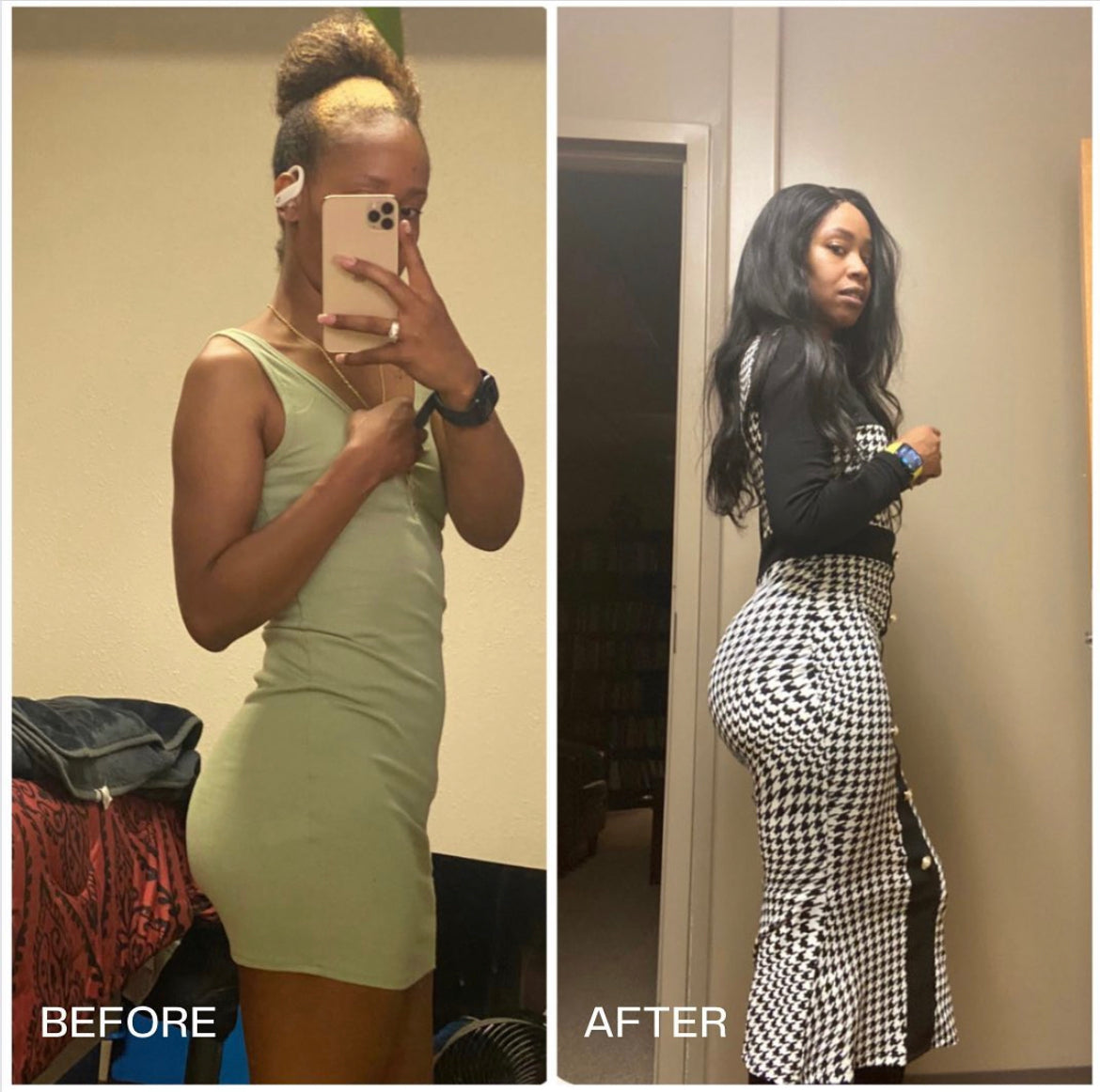 So, when I started my journey, I had been 97 pounds since I was a teenager. I got a little thick like 107 but it didn't stay. After taking that syrup and working out, that happened i love my body now.